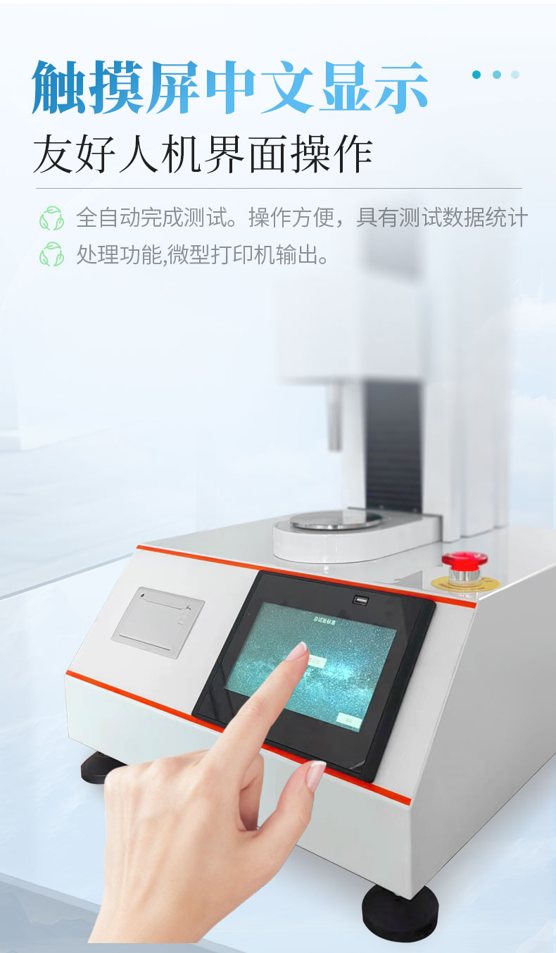 3、大觸摸屏中文顯示,友好人機(jī)界面操作。實(shí)時顯示測試曲線,全自動完成測試。操作方便,具有測試數(shù)據(jù)統(tǒng)計(jì)處理功能,微型打印機(jī)輸出。