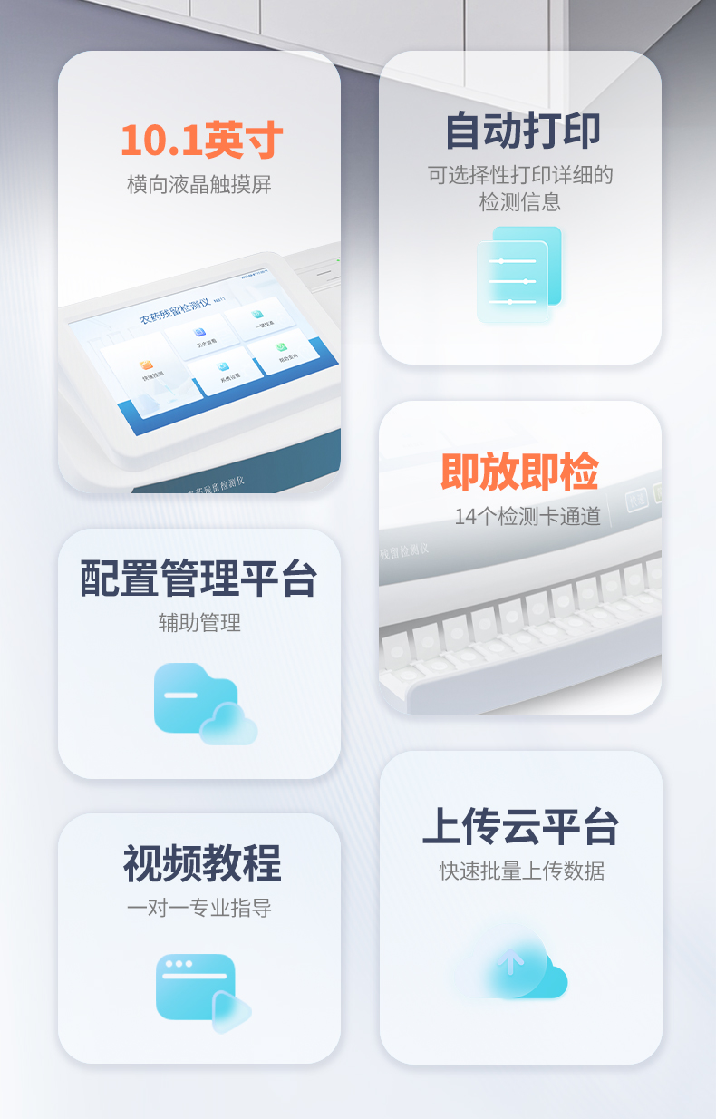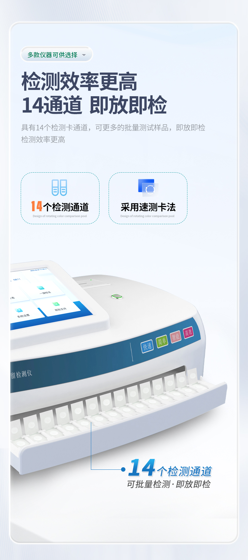4、★具有14個(gè)檢測(cè)卡通道,可更多的批量測(cè)試樣品,即放即檢,檢測(cè)效率更高。