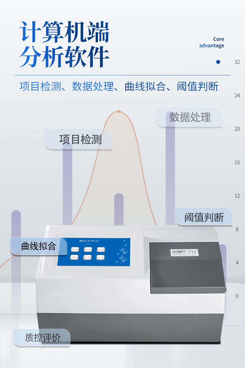 13.工作站軟件:隨機配備專業(yè)的計算機端酶標儀分析軟件,具備完善的項目檢測、數(shù)據(jù)處理、曲線擬合、 閾值判斷、質(zhì)控評價、數(shù)據(jù)庫管理、以及自定義報告單格式等功能