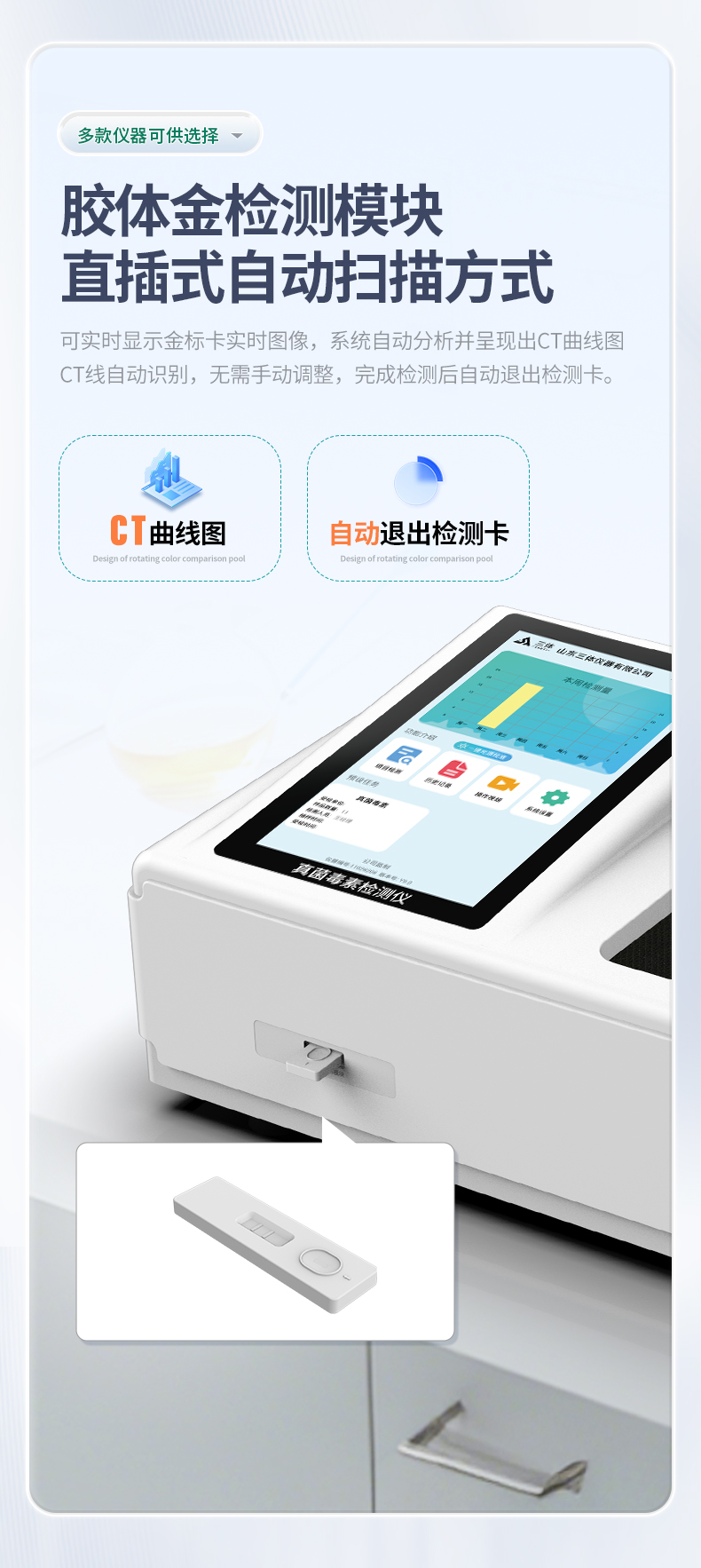 兼容市場上其他膠體金卡,使用耗材不受限制,極大增強(qiáng)用戶使用體驗(yàn)。